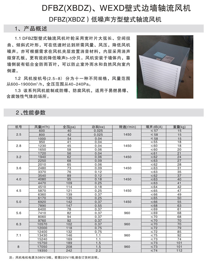 DFBZ型不鏽鋼方形壁式風機簡稱(chēng)DFBZ係列風機,它是采用低噪聲風機專用電機直聯傳動;整機製成方形,外形美觀,牆體預(yù)留方(fāng)孔安裝方便; 出風口裝有(yǒu)自垂百葉, 以防上室外雨水和自然風向室內倒灌:具有明(míng)顯的安裝(zhuāng)牢固、振動小、噪聲低、運行平穩等優點,廣泛(fàn)適用於工礦企業、民用建築、體育館、畜牧業、各種娛樂場所的壁式排風。 DFBZ-I型為采用內轉子電機直聯傳動結構形式、DFBZ-II型采用內轉子電機、皮帶傳動結構形(xíng)式,DFBZ—III型為采用外轉子電機(jī)直聯傳動結構形式。可根據用戶要求製成防腐防爆型。